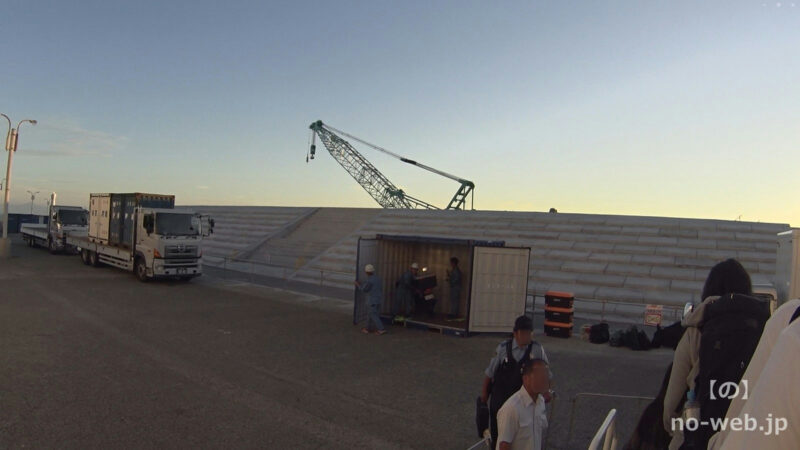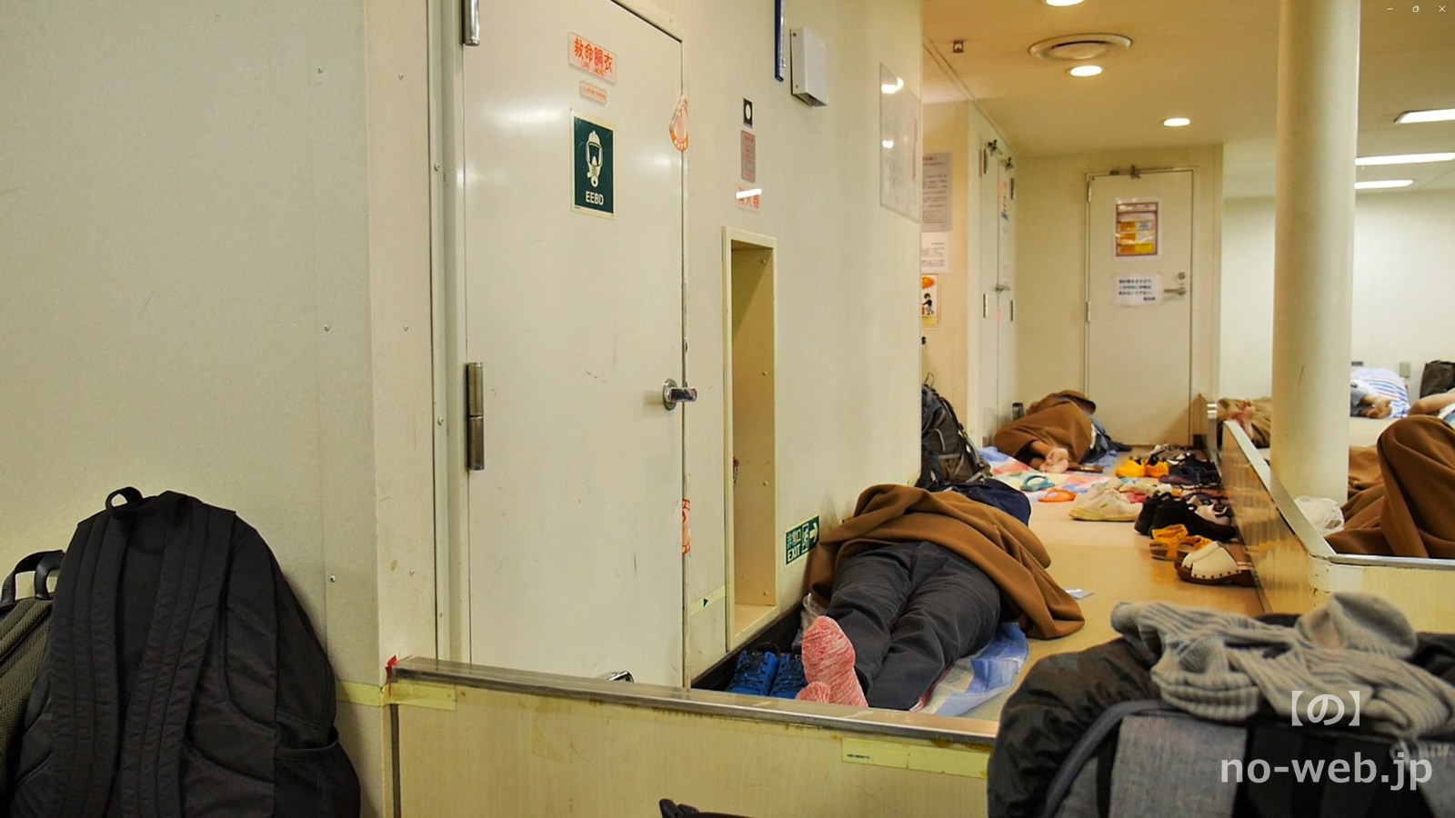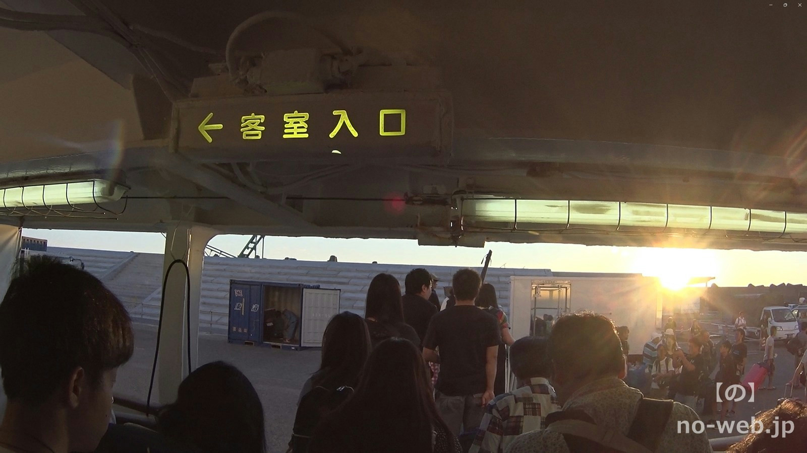 と、床や通路で寝ている乗客の撤収と大島で下船する乗客の準備を促されます。