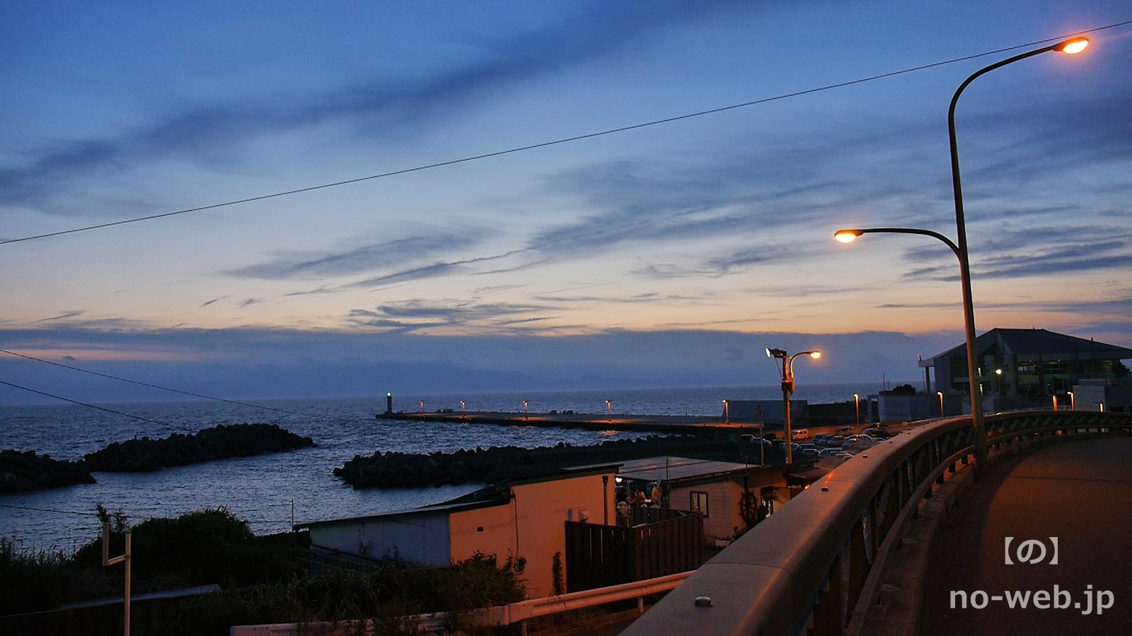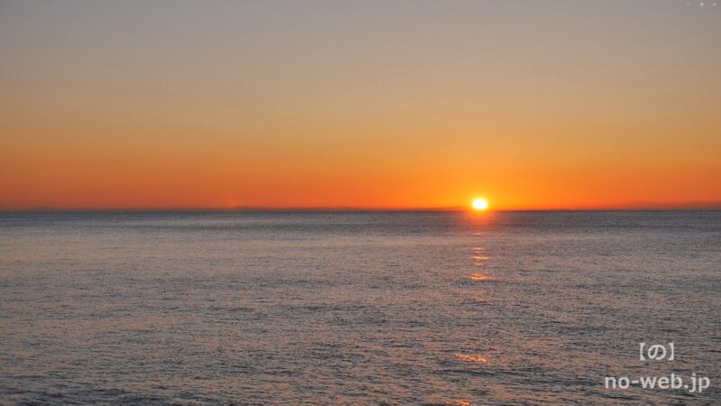04:40 波がほとんど無い穏やかな海の先、水平線からの日の出が望めました。