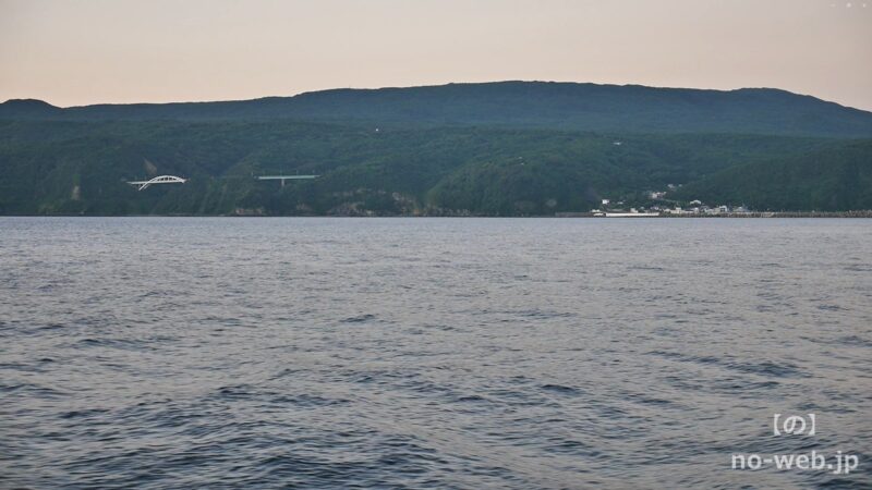 近付いてくる大島。白い橋は泉津橋でしょうか。