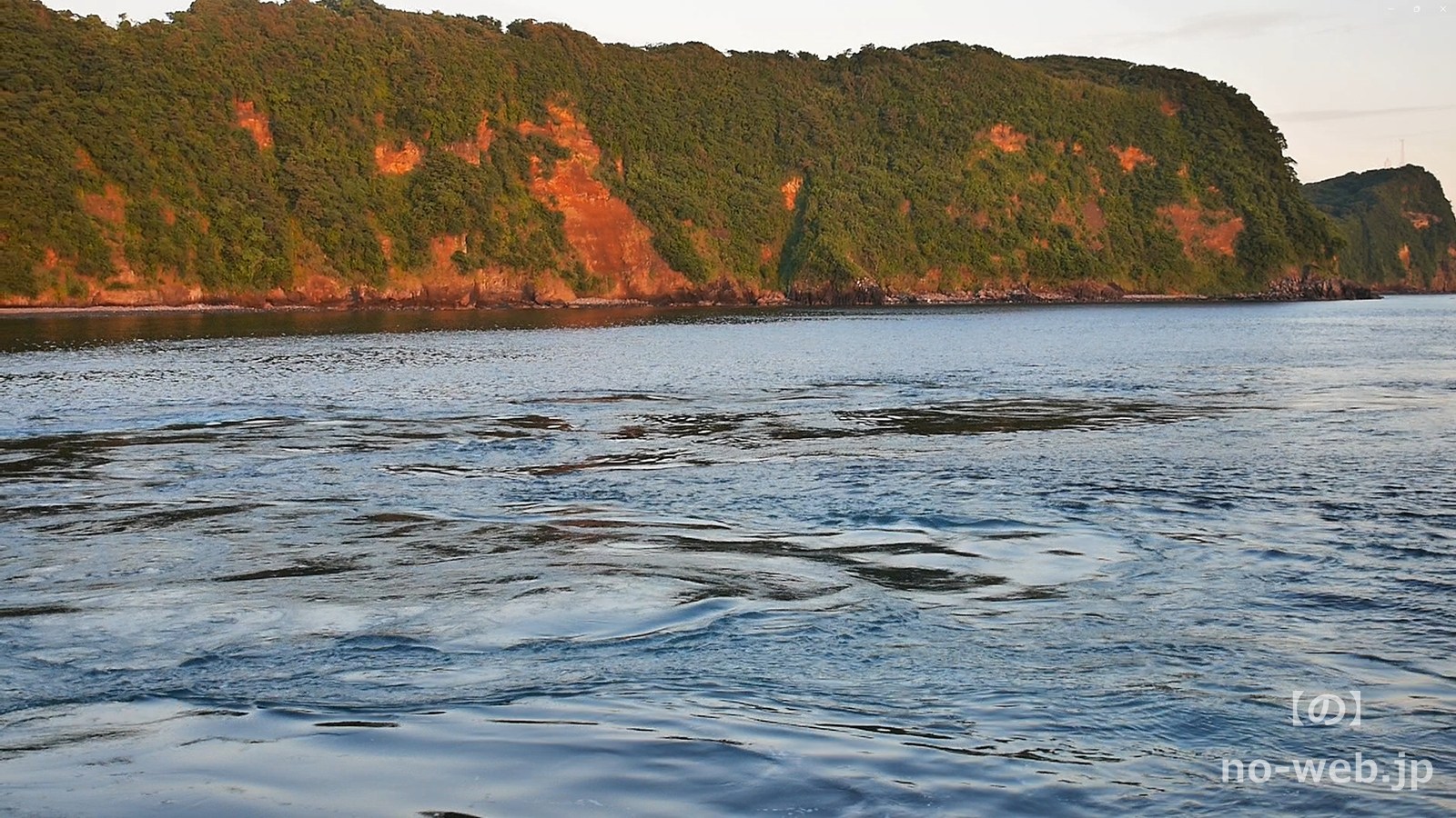 朝陽に照らされた岸壁が赤茶色に映えています。