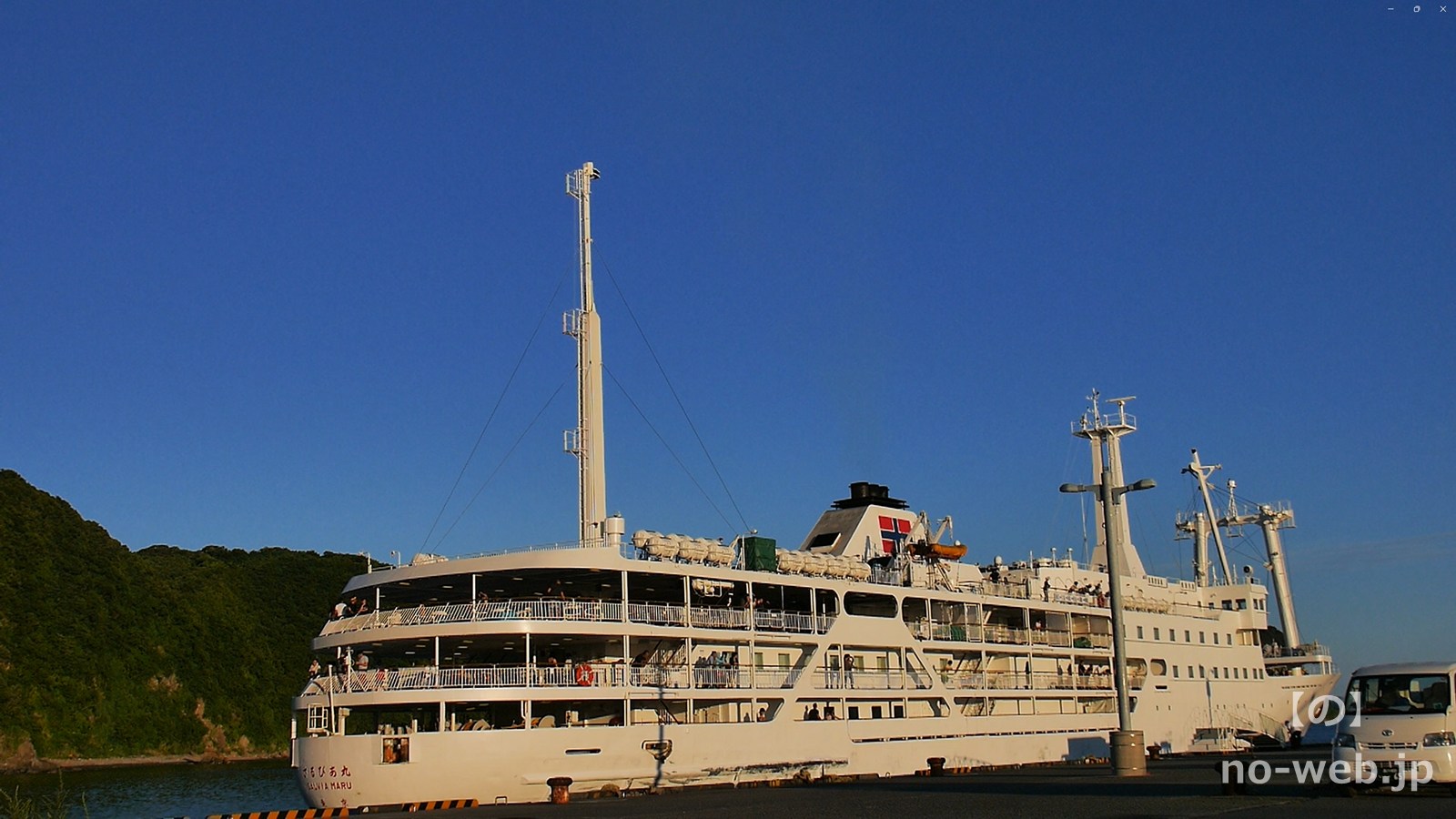 東海汽船の客船は天候により元町港または岡田港のいずれかに着岸することになっていて、この日は岡田港への着岸となったようです。