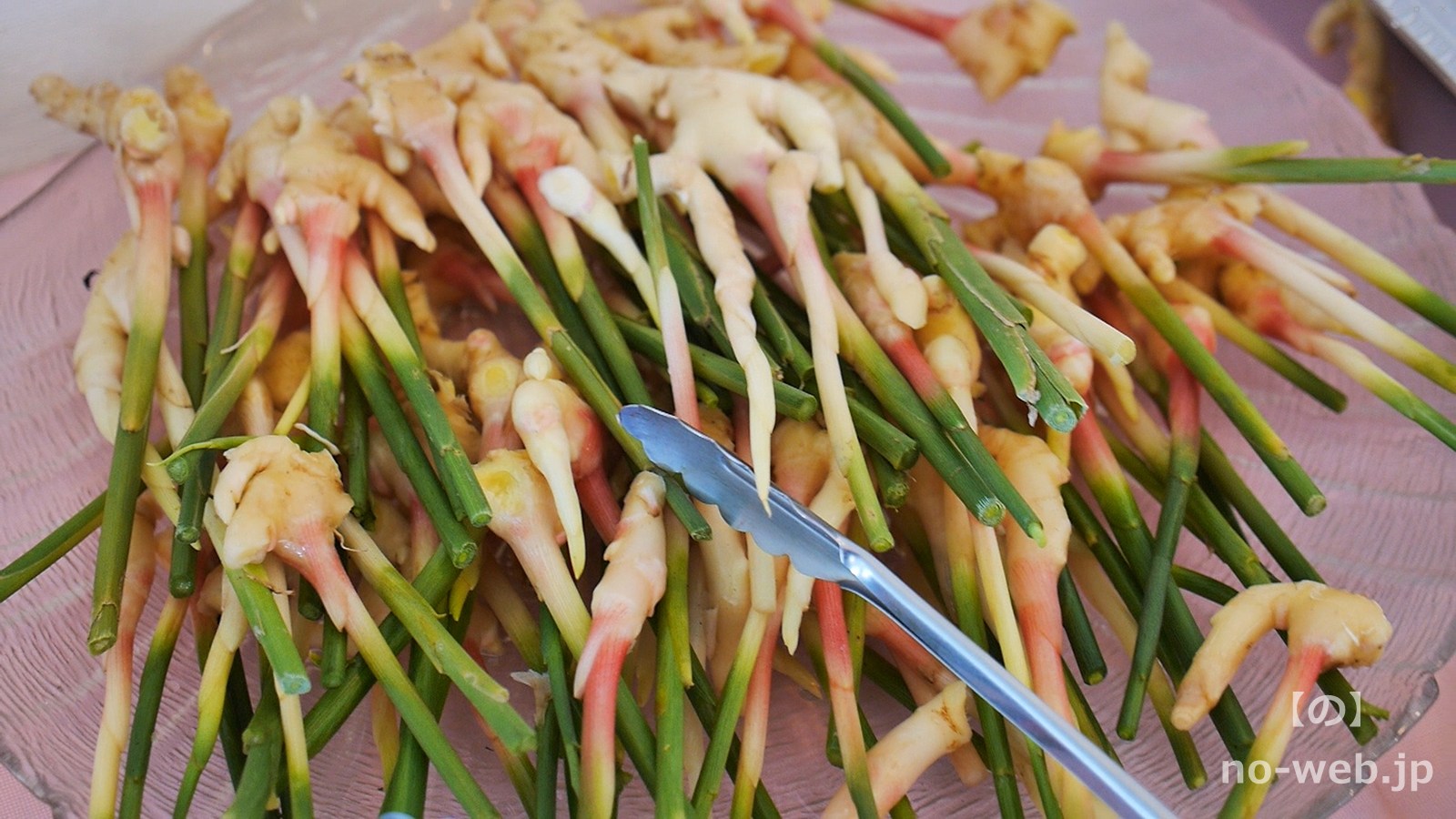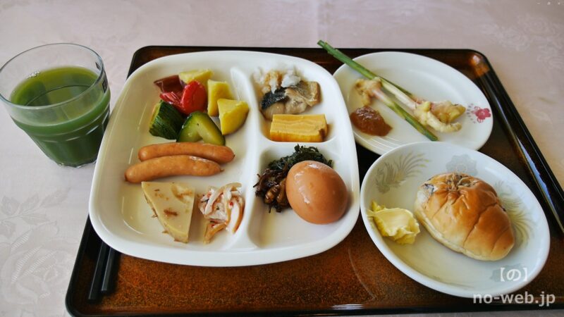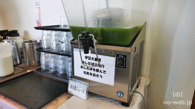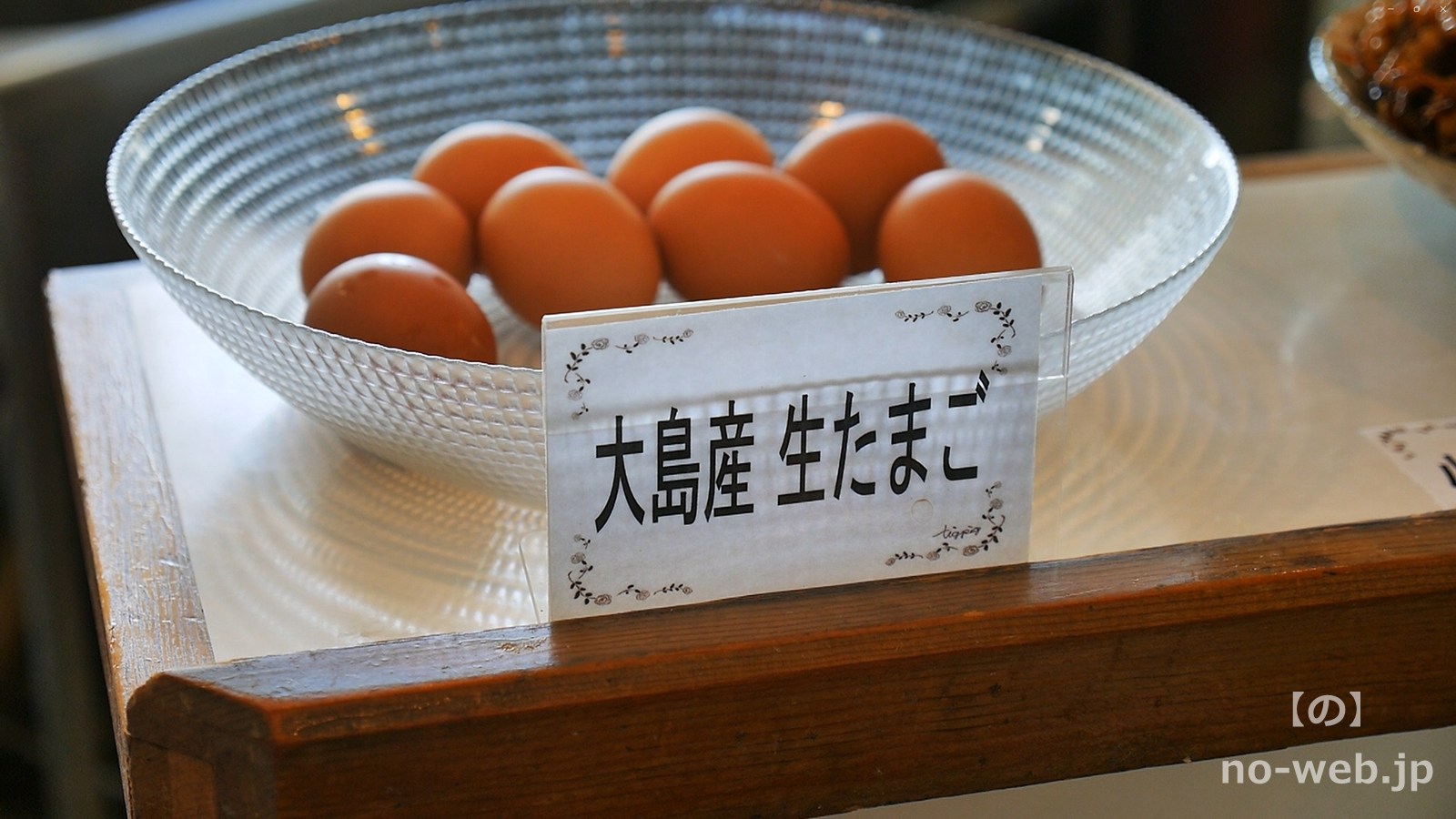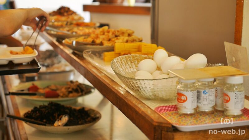 ビュッフェスタイルの朝食には大島で採れた食材が並んでいます。