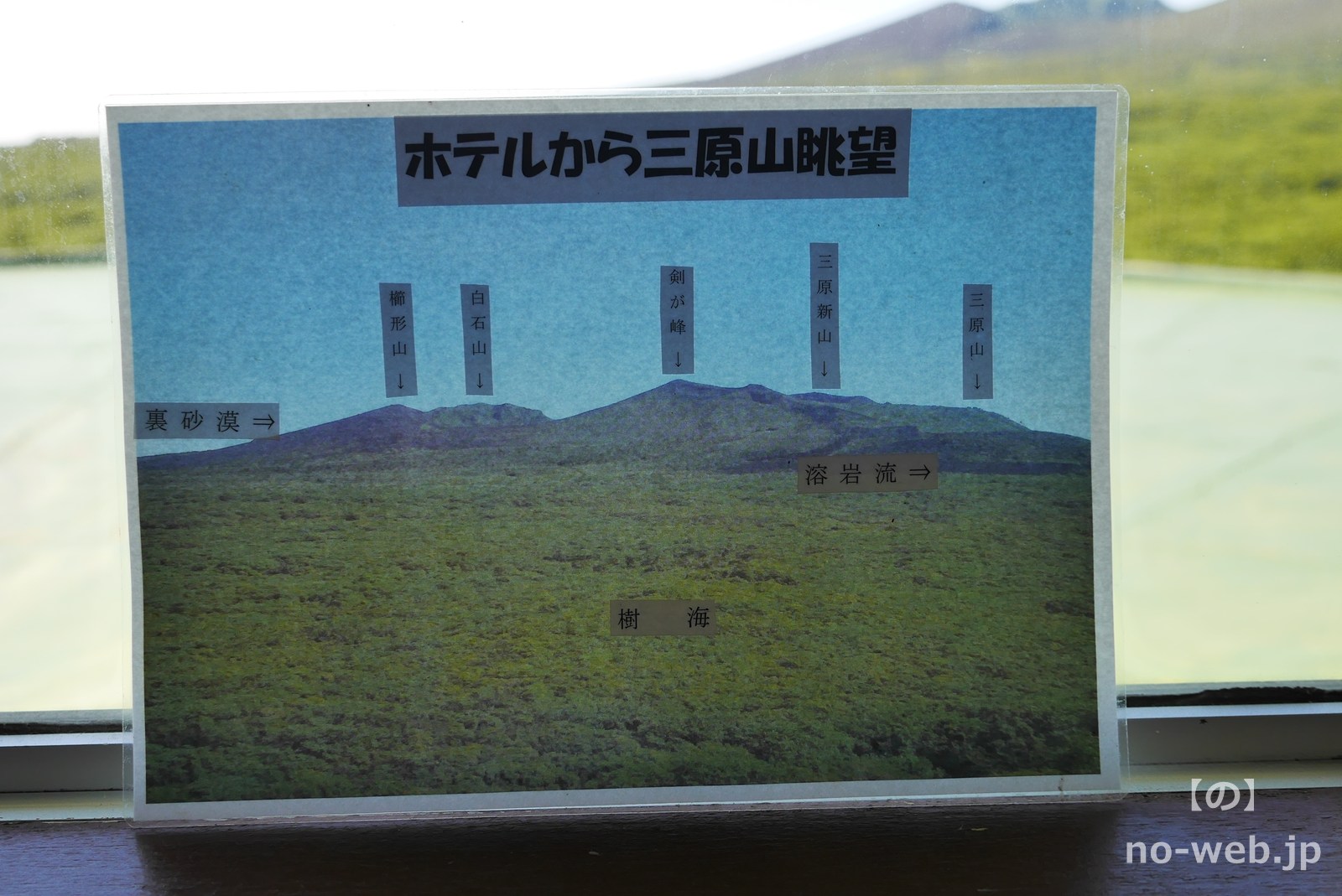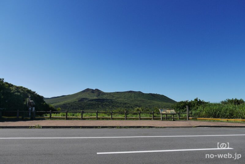 三原山は標高758m、この展望台は標高555m。ここからはかなり低い山に見えます。