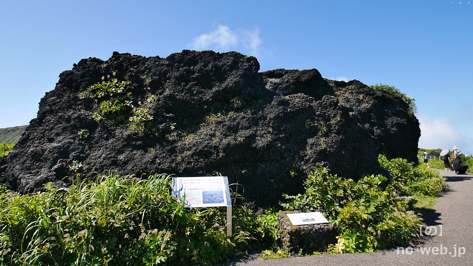 坂を登り切ると高さ5mくらいの巨大な溶岩の塊が鎮座しています。