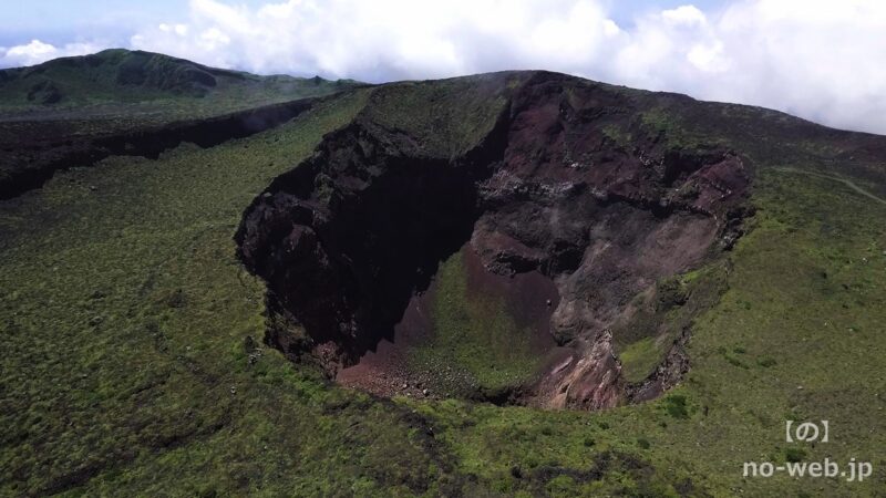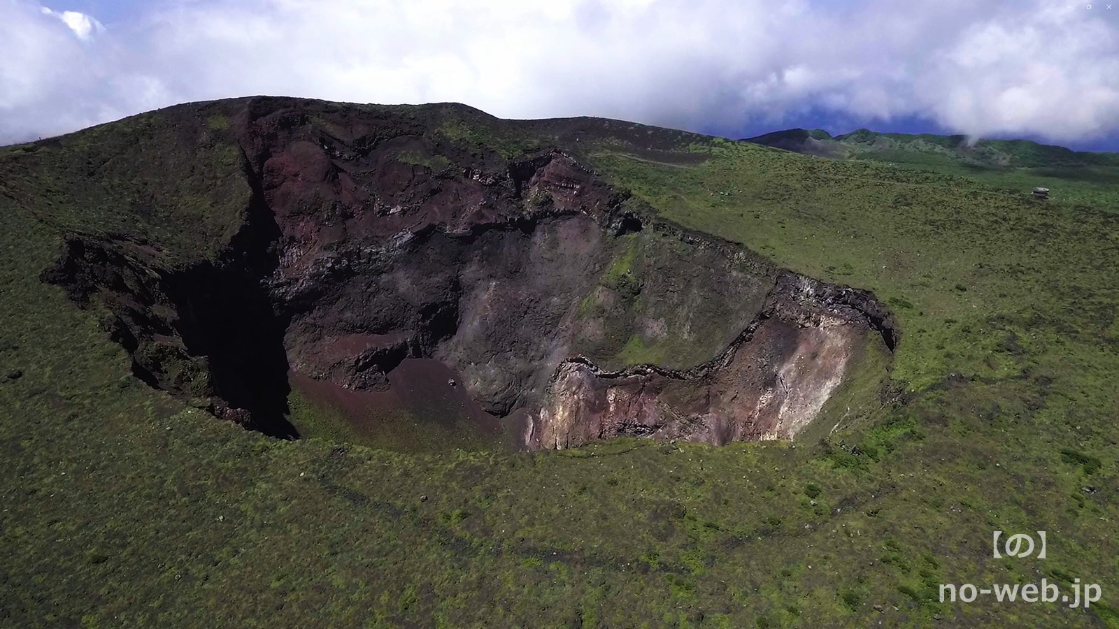 ドローンで撮影した直径約300m/深さ約200mの火口。この位置から俯瞰したほうが見やすくなりました。