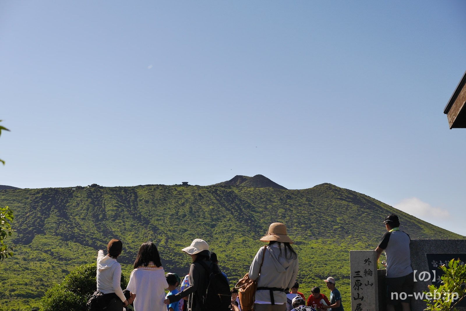 4段程度の階段状で三原山をバックに団体さんが順番に記念写真撮影をしていました。