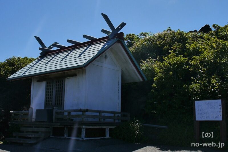 その先に社殿があり、1986年噴火では溶岩流にギリギリ飲み込まれそうになりつつも消失を免れて現存しています。社殿の裏側には直前まで迫った溶岩流の痕跡が残っています。