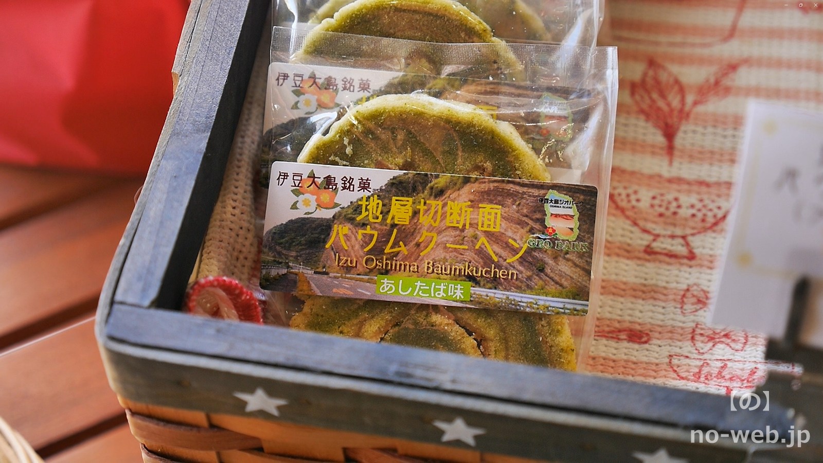 さらに地層大断面バウムクーヘンあしたば味という大島に行ってきました感が強すぎるお土産を購入。