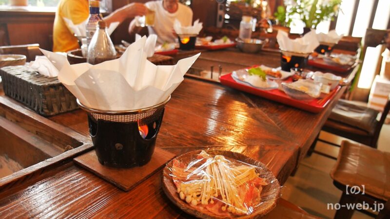 17:30 民宿の食堂でお客さんが揃って夕食。
